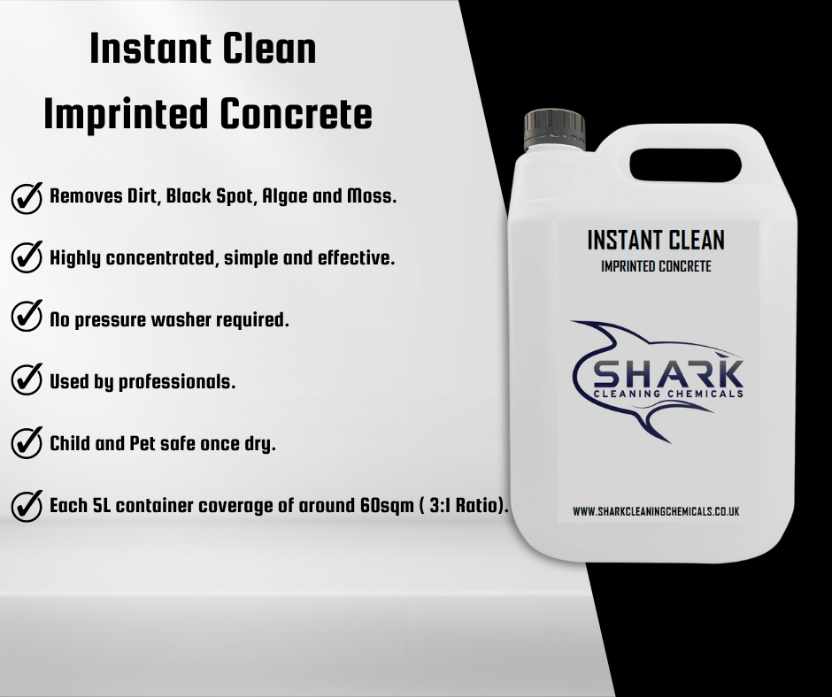 Bring your imprinted concrete back to life with Shark Instant Clean for Imprinted Concrete, a powerful cleaning solution that removes black spots, algae, moss, and dirt to restore colour and vibrancy. Specially formulated for decorative and imprinted concrete, this concentrated, eco-friendly cleaner is trusted by professionals for delivering fast and dramatic results.