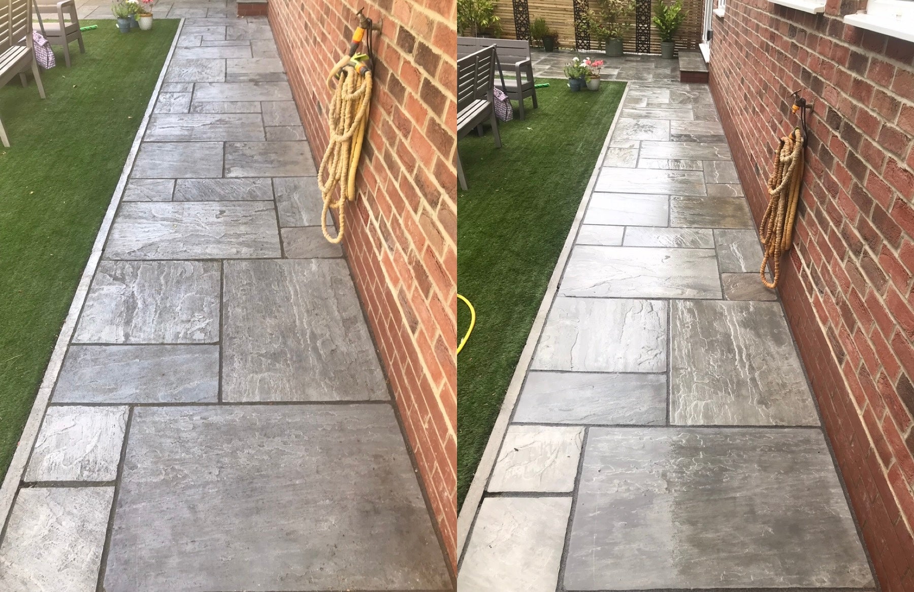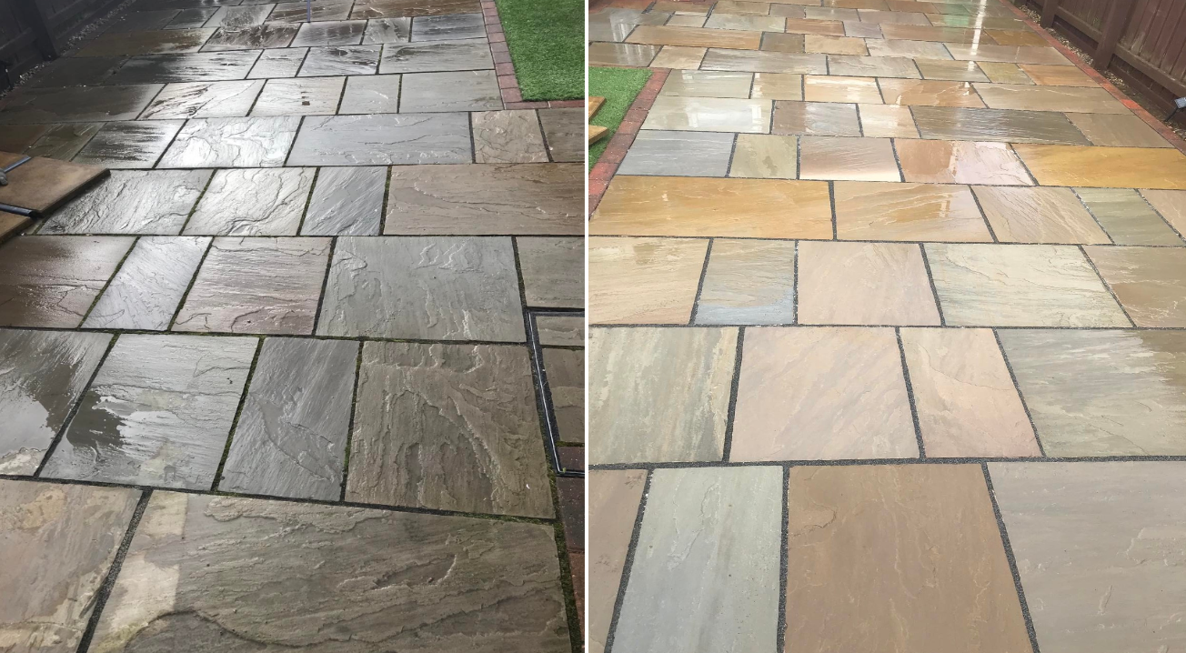 Rinse Thoroughly – Wash away with a hose or pressure washer to reveal restored stone.